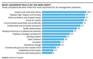 Opmerkelijk was het gegeven dat de vaardigheid ‘technische of professionele expertise’ niet bij de 7 belangrijkste vaardigheden zat. Om een goede leider te zijn constateerden zij dat “you must possess the skills to inspire and motivate others, display high levels of honesty and integrity amd have great problem solving and communication skills”.