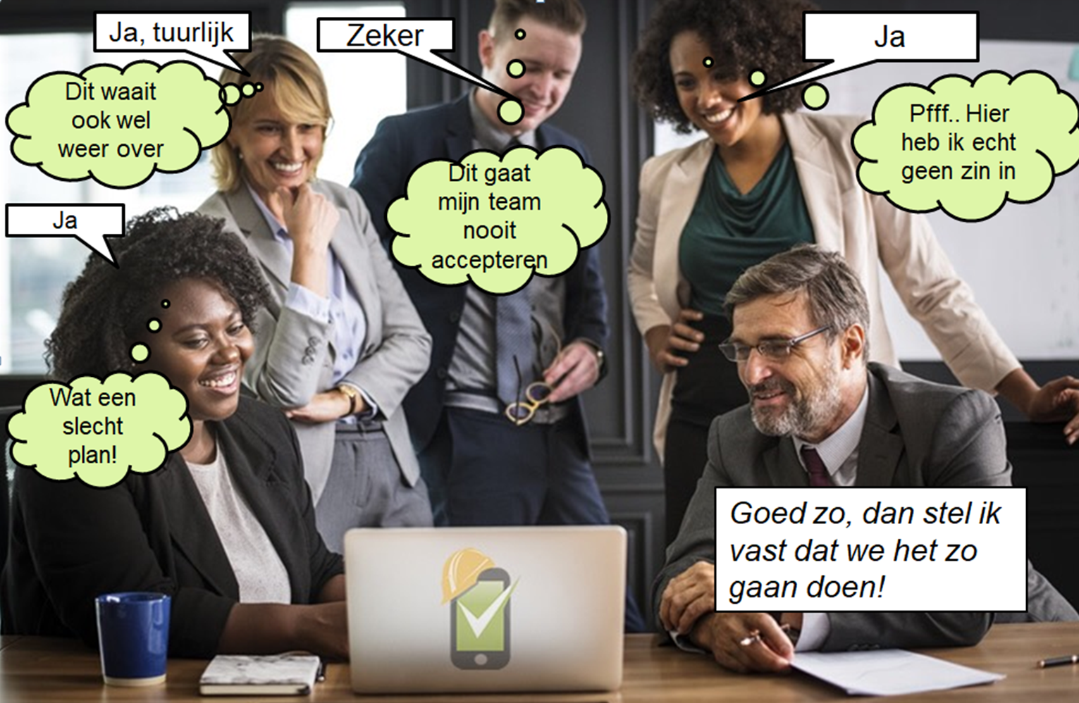 Tegen leidinggevenden die zich niet willen committeren aan de hogere doelstellingen van de organisatie en het algemene belang